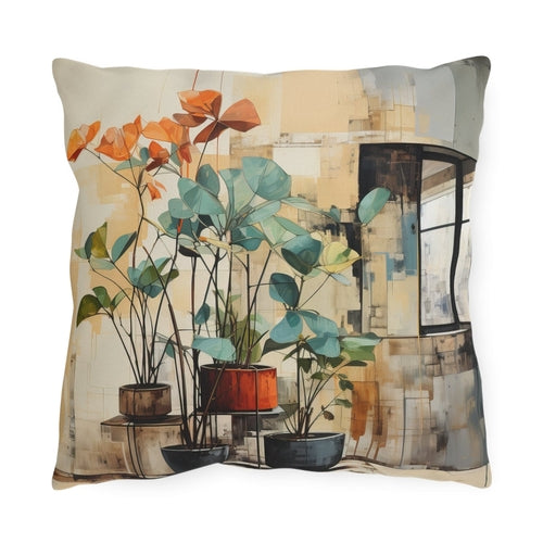 Rustic Botanical Throw Pillow – Indoor & Outdoor Decorative Pillow, UV & Water-Resistant for Patio, Garden & Home